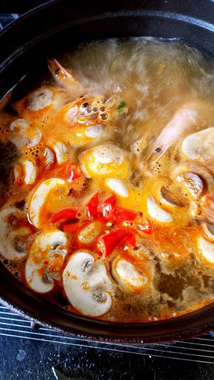 备料,柠檬叶没有可以不放,冬阴功酱我用的是泰国家乐冬阴功酱料块,香茅草最好还是要有,这些万能的某宝都可以买到。