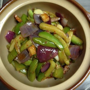把洋葱,红辣椒,咸鱼都炒好
