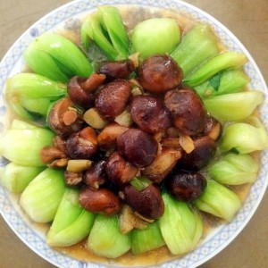 待香菇炒软放入油菜大火翻炒,倒入适量的生抽和醋,锅干可以洒少量的泡香菇的水,或者清水,翻炒到油菜变软放适量的盐,和少量的糖,装盘出锅。也可加少许淀粉水勾芡一下。