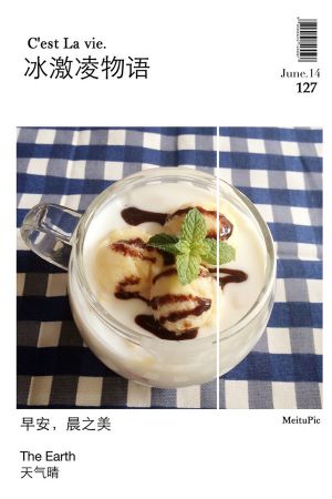 第二天取出冻好的冰激凌,杯中放鲜果肉和酸奶。