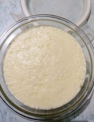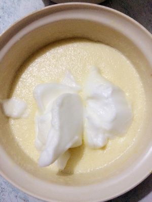 加入蛋清后的蛋奶糊变得格外的蓬松。
