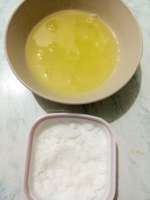 现在准备打发蛋清了,在这个步骤之前,蛋清一直是在冷藏室里休息嗒,因为夏季炎热,蛋清受热后不易打发,装蛋清的盆要无水无油干净的盆哦!