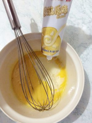 蛋黄糊中加入原味炼乳,继续搅拌均匀。