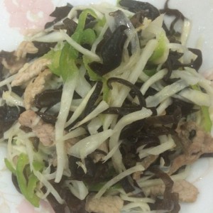 木耳温水泡开去蒂切丝,根据自己喜欢吃的量切!我比较喜欢吃木耳所以切多了一点,差不多1:1的比例!