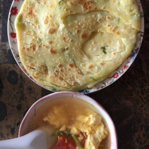 配上一碗汤,一段早餐搞定,汤暖暖的,饼软软的,酥酥的,美味!
