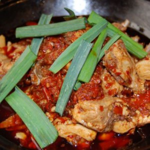 炒锅内放油烧至6成熟时下入鸡块,爆一下起锅;