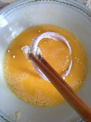 切好的洋葱圈洒些盐和黑胡椒粉腌10分钟后再先裹面粉接着粘鸡蛋液最后裹面包糠下锅炸。