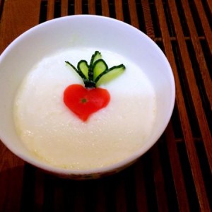 用筷子顶住倒出牛奶,碗底剩余点牛奶,倒出的牛奶加白糖鸡蛋清打散,过筛,沿碗边缓缓倒回,奶皮浮气,盖保鲜膜蒸25分钟取出(这个过程就顾做了没拍)