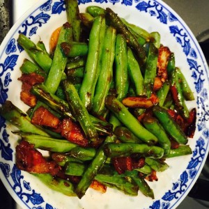 猪肉至金黄色时➕四季豆➕蒜头➕辣椒