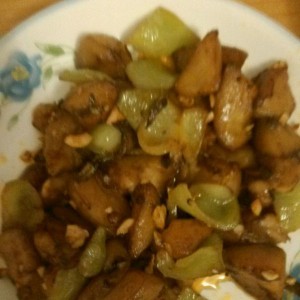 翻炒至茄子快熟了加入柿子椒,柿子椒断生后加入盐和蒜末,关火,大功告成。