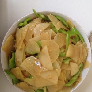 尖椒洗干净切丝(本人刀法不好,不要笑话我哟)
