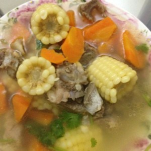 排骨边加红萝卜,玉米和适量水放高压锅,上汽转中小火压制20分钟
