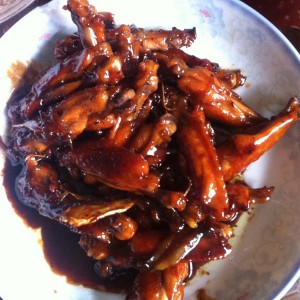 花生油倒入锅内 下葱段爆香后下鸡翅,然后转中小火加红酒 冰糖 盐,烧至汤汁收尽关火,装盘…