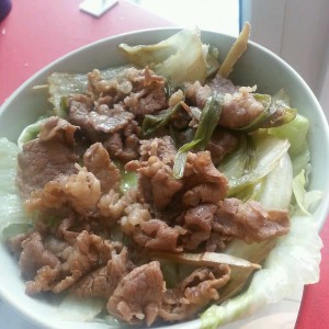 放肥牛,炒到变色加鸡汁(鸡精)和生抽调味,加一点水烧开