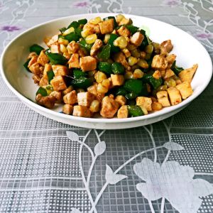 在鸡丁中放入西红柿酱,生抽,盐,生姜粉,翻炒鸡丁至七成熟。