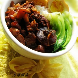 香菇切条,蛋剥皮,油菜对半切开。看看卤肉饭丰富的材料你就了解这饭有多好多营养了^_^