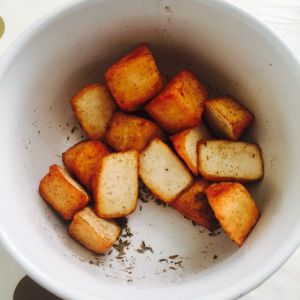 烤箱200度预热;鱼豆腐切块,摆烤盘