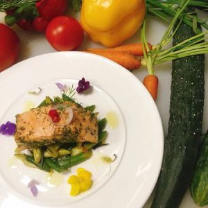 莳萝柠檬香烤三文鱼中段配黄油芦笋