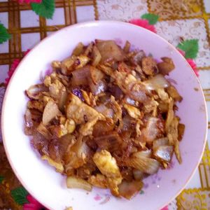 放入炒熟的鸡蛋,炒匀加少许酱油十三香,味精即可出锅装盘