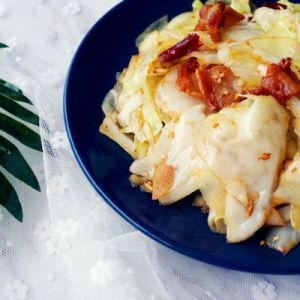 5.然后将手撕的包菜倒入锅中,大火翻炒,下白糖、盐、白醋调味