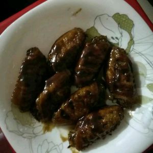 先把鸡翅划几条痕,然后把鸡翅和姜片放进锅里,有一点点黄色之后呢。