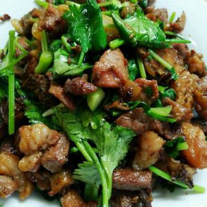 锅中放油,葱姜爆香后放入羊肉炒制熟透,加入孜然粒,关火后放入香菜。完成。