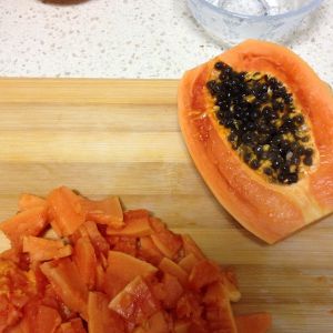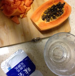木瓜切成小块,个人偏喜欢果肉入酸奶味的口感