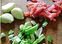 锅里放油,油烧至七八成热,放入茄子过油,熟后捞出来,泡过盐水的茄子吸油没那么厉害,实在怕油太多,可以过一下水,去掉表面的油