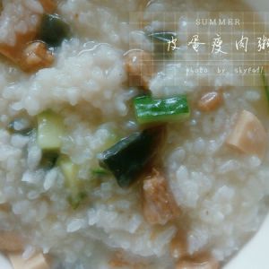 先将瘦肉切成丁,用鸡精生抽。少量的淀粉腌制,不能用酱油,不然颜色会太深。将皮蛋切成丁,然后放入少量的香醋搅拌,这样可以去除皮蛋里边儿的苦涩味。同时在电饭煲中放入大米和适量的水,开始熬成粥。根据个人经验,粥的稀释程度,根据个人口感来定。