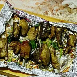 再次取出,打开铝纸把汤汁倒出,再次放入光波炉中烘烤,250度10分钟,可打开翻动两面烘烤,注意观察防止烤糊。