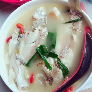 加开水,盖锅盖煮到汤变白,下调味料,葱叶,枸杞,滚两滚出锅
