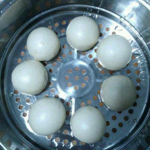 二次发酵完毕,篦子上抹一层油,每个馒头之间要留一定的距离,不然熟了粘一块了,凉水上锅蒸20分钟,然后焖3分钟再开锅盖。