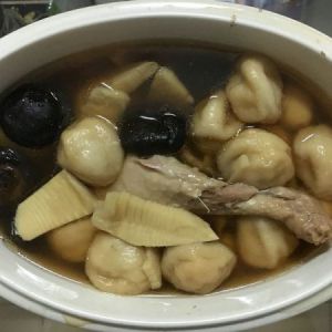 放入之前准备好的材料。倒入适量黄酒,熬制约2-3小时。