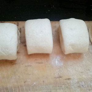 面发好了,揉搓成两个面荠子,开始用擀面杖擀平了。