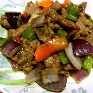 少许油入锅后滑炒牛肉片至半熟,放入蔬菜一起炒一分钟