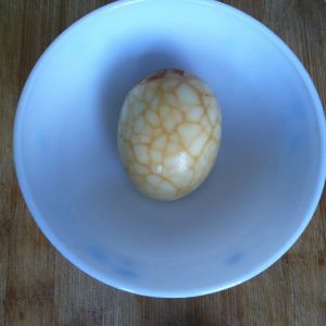 把外皮敲碎,敲的好不好直接决定你的茶叶蛋纹理好不好看