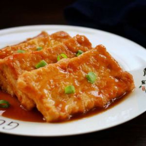 把煎好的豆腐放进去,小火烧上五六分钟,然后勾个薄芡淋入香油即可关火出锅。