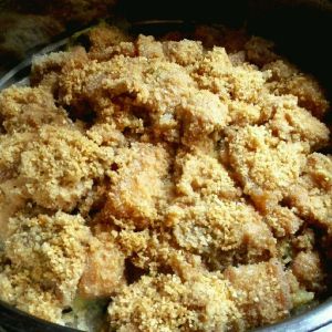 把蒸肉粉倒入腌好的五花肉中搅拌均匀,需每片肉上都粘着米粉。