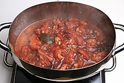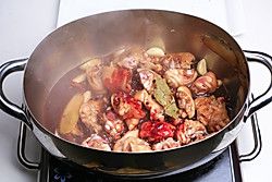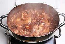 打去表层的浮沫,然后放入黄豆酱,加盖用中火焖至半小时。