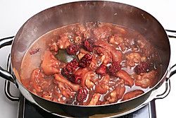 直到用筷子能很容易的扎穿猪蹄放入洗过的红枣。