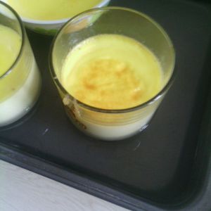 放入烤盘,烤盘里面的水要相当于布丁深度的一半。160度,烤半小时