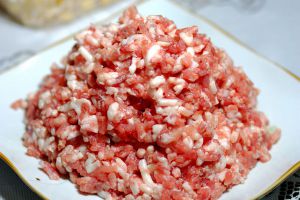 超市肥肉馅!最好是买五花肉去皮,切丁。省事就用肉馅,口味就差了!
