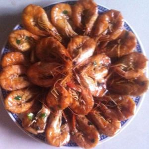将处理好的虾入油锅过一遍至呈红色捞起,时间不宜过久,否则肉质容易变老
