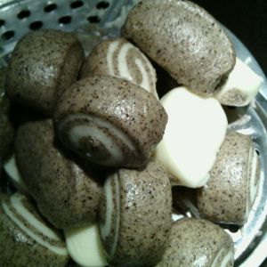 芝麻炒熟磨成粉和面粉糖发酵粉搅拌均匀