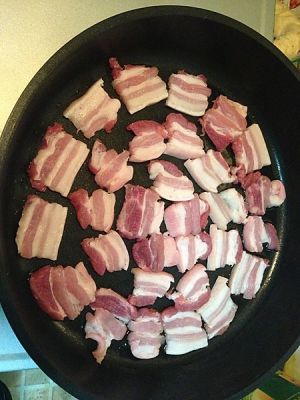 五花肉切片,放置到炒锅中煎至两面金黄。