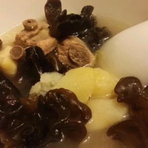 将泡好的木耳和削皮的山药洗净,放入汤锅,开大火烧滚,再改小火煨30分钟,放入适量的盐,就可以吃了。如果有时间,煨长点更好
