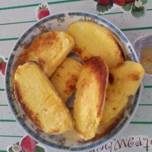 把牛油煮融,放花生油煎馒头,煎到黄即可。