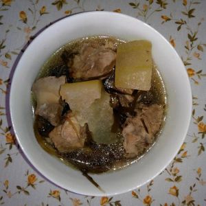 排气后打开锅盖,放入准备好的冬瓜块和海带丝,均匀洒上盐和胡椒粉,加上生抽,再炖十五分钟。