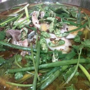 在湿温油里炒香,再把这花椒和油一起淋在鱼片上,会听到吱吱吱的油声,同时很香的花椒麻香味啊。