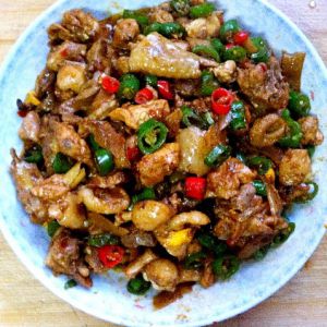 下鸡肉炒匀,放少许鸡精翻炒片刻即可。